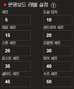 | 운명보드 이름 | 레벨 |
